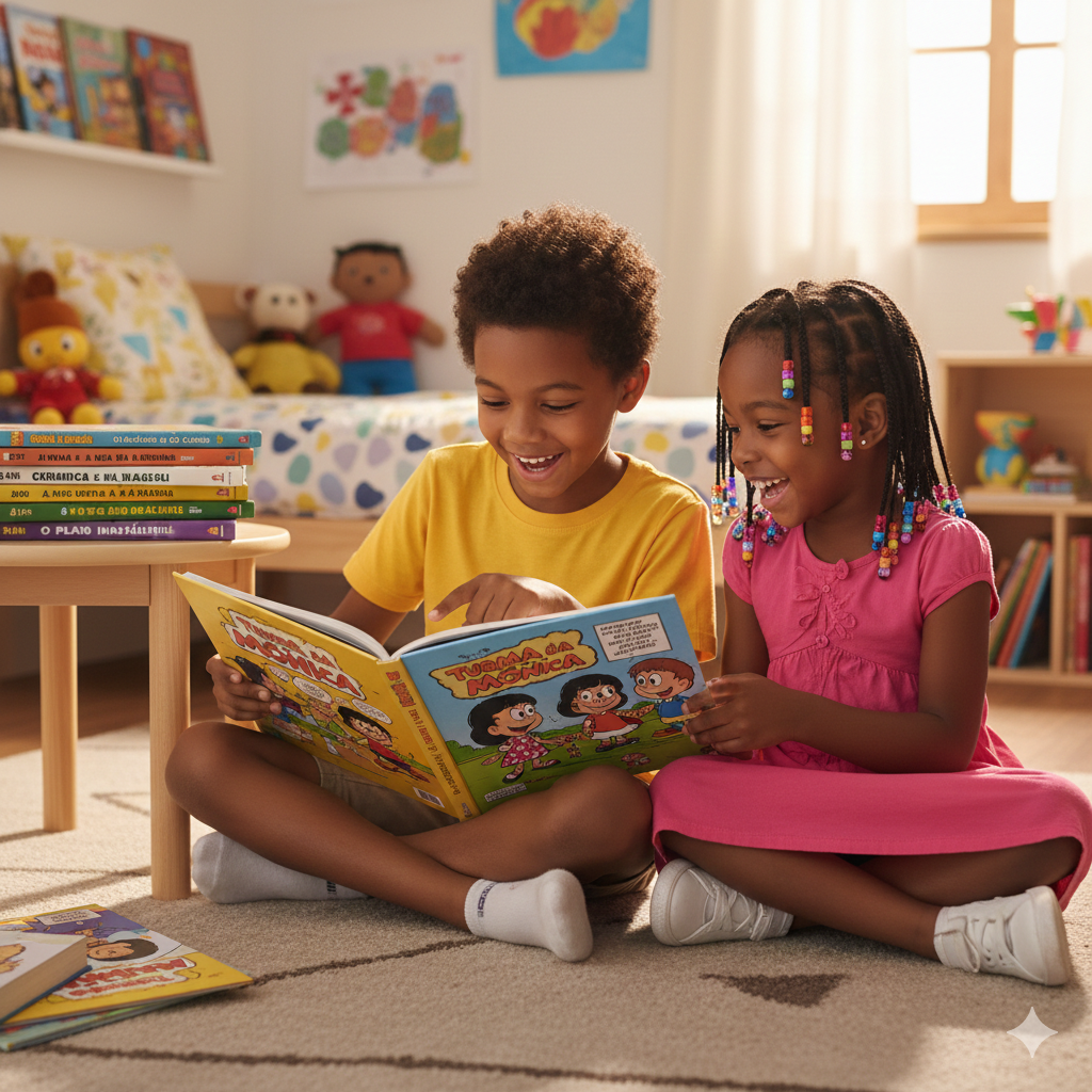 Uma coleção completa de clássicos e histórias brasileiras pensada para criar rotina de leitura — mesmo longe do Brasil.